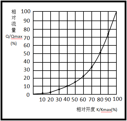 •每一種規(guī)格的遠(yuǎn)傳智能平衡閥經(jīng)試驗(yàn)測量,都呈現(xiàn)了如下圖所示的等百分比流量曲線特性(開度流量曲線關(guān)系),具備了良好的流量調(diào)節(jié)特性,在平衡閥調(diào)試時(shí)可準(zhǔn)確的調(diào)節(jié)流量。